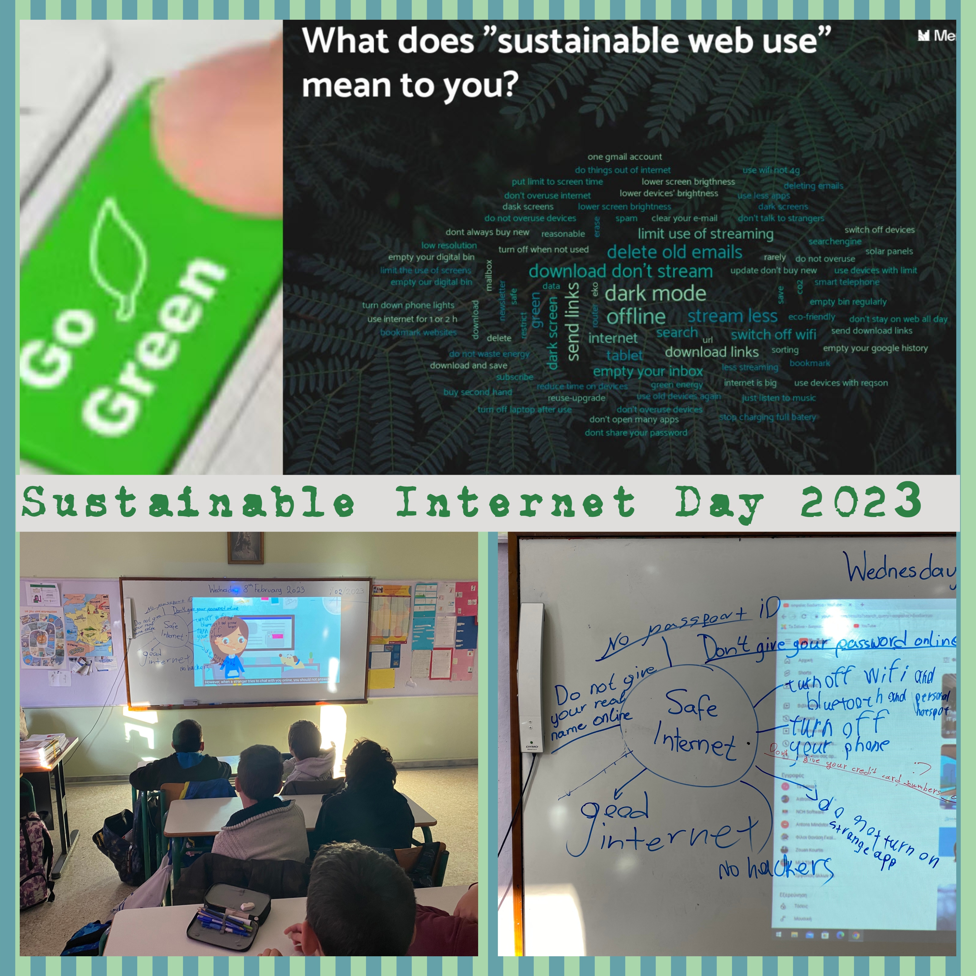 Οι μαθητές των Ε' και ΣΤ' τάξεων πήραν και φέτος μέρος στον ετήσιο εορτασμό της Ημέρας Ασφαλούς Διαδικτύου. Με αφόρμηση ενημερωτικά βίντεο συζήτησαν ιδέες για την ασφαλή πλοήγηση και χρήση του διαδικτύου. Στη συνέχεια οι μαθητές της Ε' τάξης δημιουργήσαν αφίσες με ενημερωτικά μηνύματα για την ασφαλή χρήση ενώ οι μαθητές της ΣΤ' συμπλήρωσαν ταυτόχρονα με τους μαθητές άλλων σχολείων ένα συννεφόλεξο με ιδέες για την ασφαλή και βιώσιμη χρήση του διαδικτύου, στα πλαίσια του eTwinning έργου "Greentopia-Our Sustainable Home".
