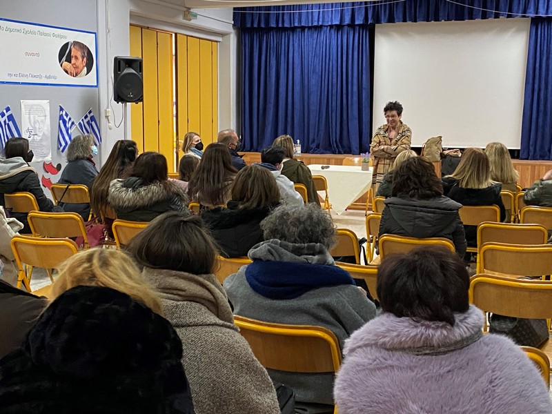 Την Τρίτη 22 Μαρτίου είχαμε τη χαρά να υποδεχθούμε στο σχολείο μας την ιστορικό, κυρία Μαρία Ευθυμίου, σε μια εκδήλωση που απευθυνόταν στους εκπαιδευτικούς του Παλαιού Φαλήρου.