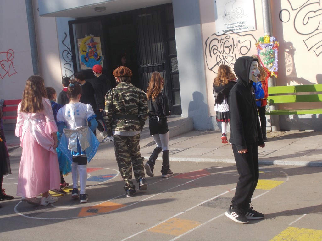 Στη συνέχεια μαθητές από την ΣΤ τάξη παρουσίασαν το γαϊτανάκι και παραδοσιακούς αποκριάτικους χορούς.