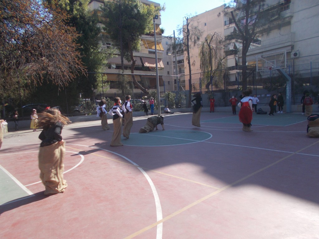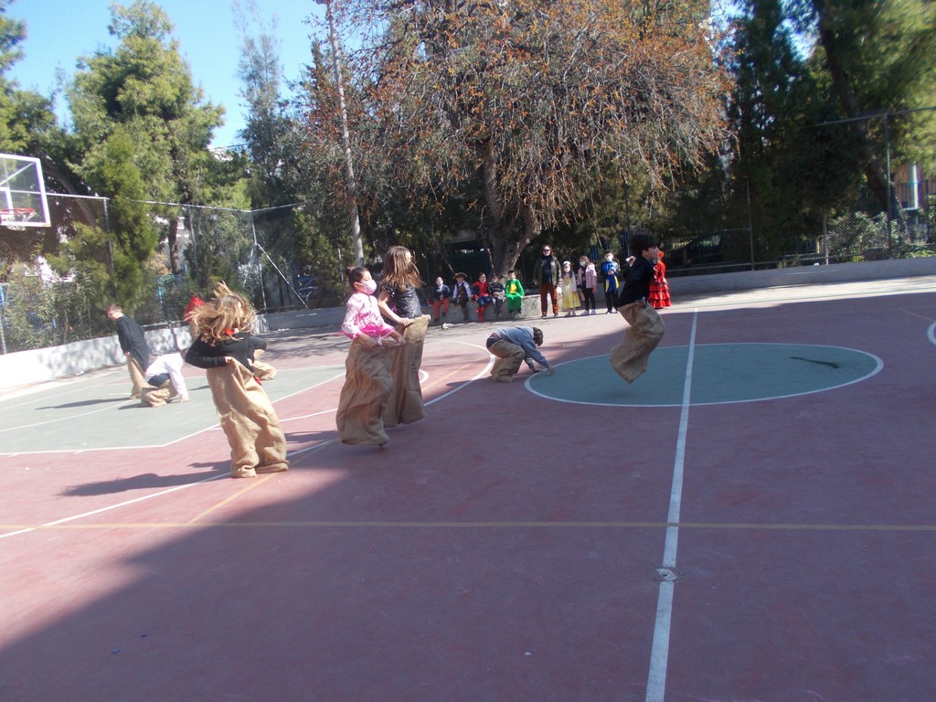 - Οι μαθητές των Ε και ΣΤ τάξεων έπαιξαν : μην πέσει το μπαλόνι, τζαμί, αυγοδρομίες και τσουβαλοδρομίες.