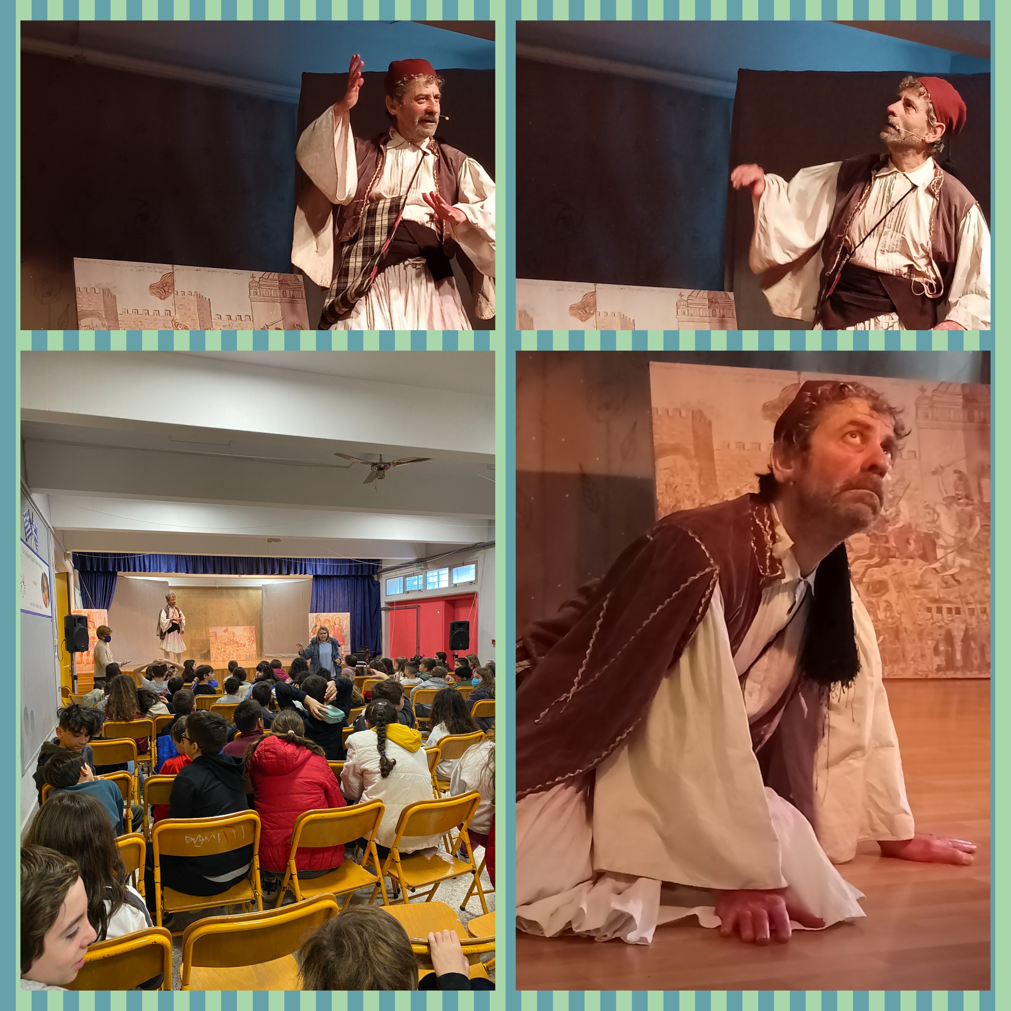 Μια ξεχωριστή παράσταση παρακολούθησαν οι μαθητές μας την Παρασκευή 17 Μαρτίου 2023 στο θέατρο του σχολείου. Η παράσταση "Θεόφιλος" σε κείμενο του Θανάση Σκρουμπέλου και σκηνοθεσία του Νίκου Βερλέκη με τον καθηλωτικό Θοδωρή Προκοπίου στον ρόλο του Θεόφιλου που μέσα από το δύσκολο είδος του θεατρικού μονόλογου κατάφερε να κάνει τα παιδιά να βιώσουν τη ζωή του, από τα πρώτα του βήματα στην εφηβεία και το πρώτο του ταξίδι από την Μυτιλήνη στη Σμύρνη για να βρει το δρόμο του, να ακολουθήσουν το όνειρο του για την “ζωγραφιά” που τον έφτασε μέχρι το Βόλο και το Πήλιο. Την επιθυμία του να πολεμήσει για την πατρίδα, τα οράματά του, τις απορρίψεις, τον χλευασμό και τη φτώχεια. Αλλά και τη χαρά της επιστροφής στη Μυτιλήνη, την πρώτη αναγνώριση και την δικαίωση που ήρθε μέσα από τα ίδια του τα έργα.