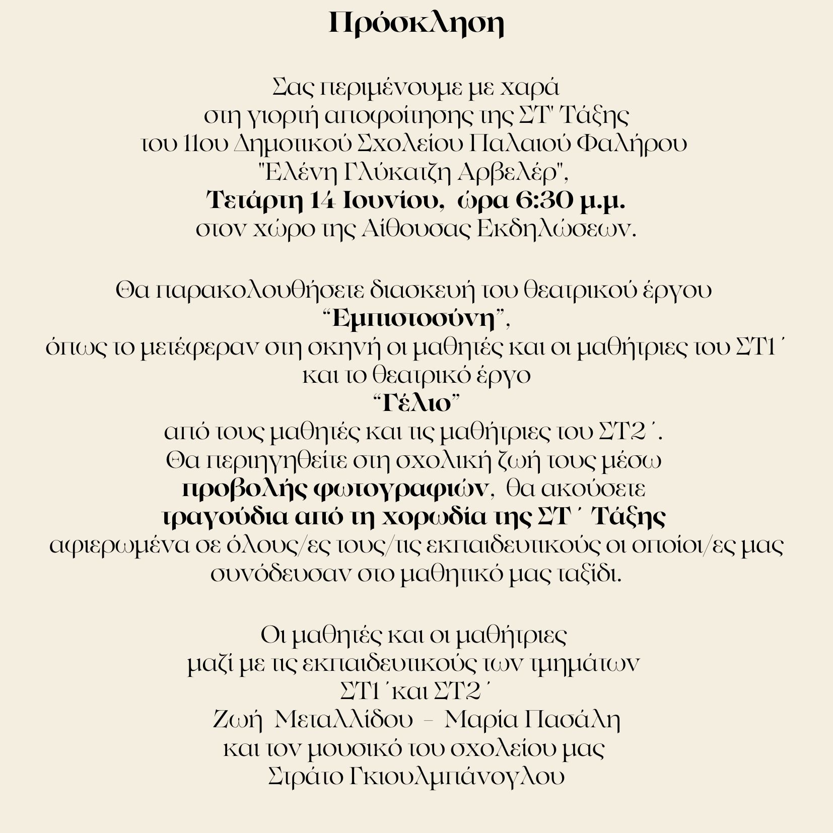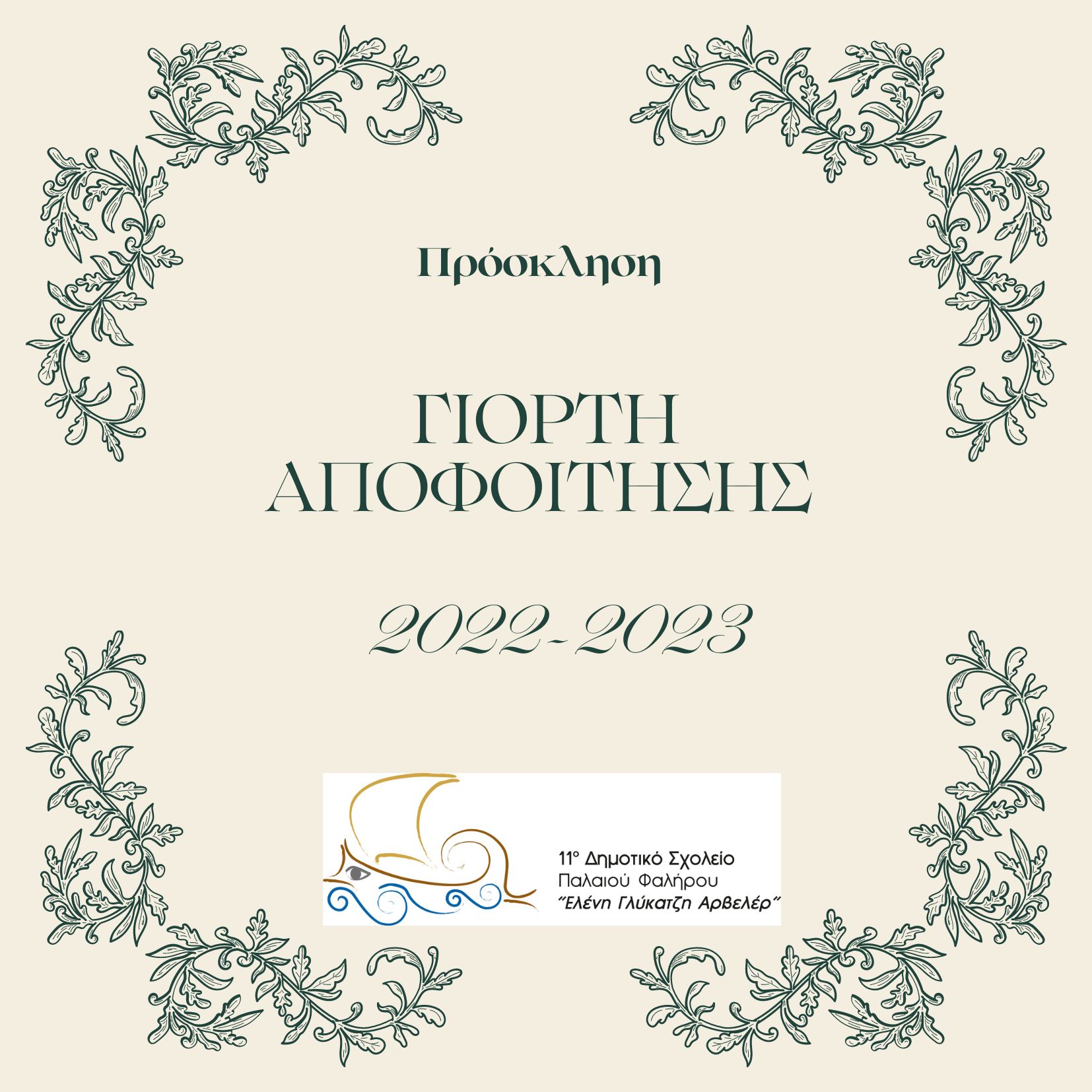 Πρόσκληση στη γιορτή αποφοίτησης της ΣΤ' Τάξης