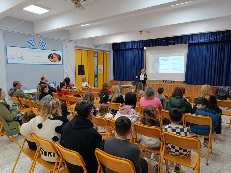 Πραγματοποιήθηκε με επιτυχία την Πέμπτη 22 Φεβρουαρίου στην Αίθουσα Εκδηλώσεων του Σχολείου μας το προγραμματισμένο Σεμινάριο με θέμα "Επενδύοντας στην πρόληψη για τη σχολική βία και τον εκφοβισμό στη σχολική κοινότητα". Η εισηγήτρια, κυρία Γεωργία Μπουλμέτη, Σϋμβουλος Κοινωνικών Λειτουργών, εκμεταλλευόμενη την παρουσία Μαθητών, Γονέων και Εκπαιδευτικών παρουσίασε το πρόβλημα, όπως αυτό αρχίζει να εμφανίζεται και στην Πρωτοβάθμια Εκπαίδευση και πρότεινε μέτρα πρόληψης για την αντιμετώπισή του.
