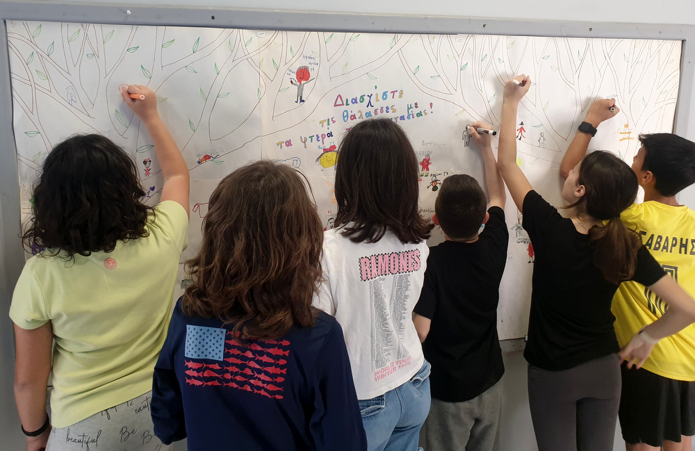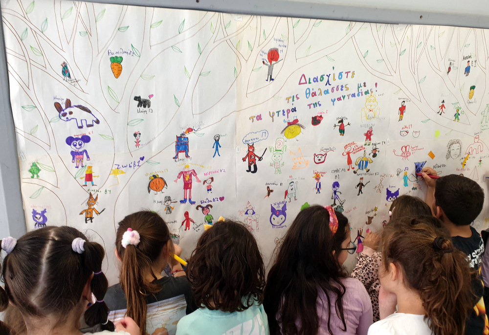 Το σχολείο μας τίμησε αυτήν την ημέρα δημιουργώντας μια συλλογική αφίσα εμπνευσμένη από αυτή της εικονογράφου Nana Furiya.