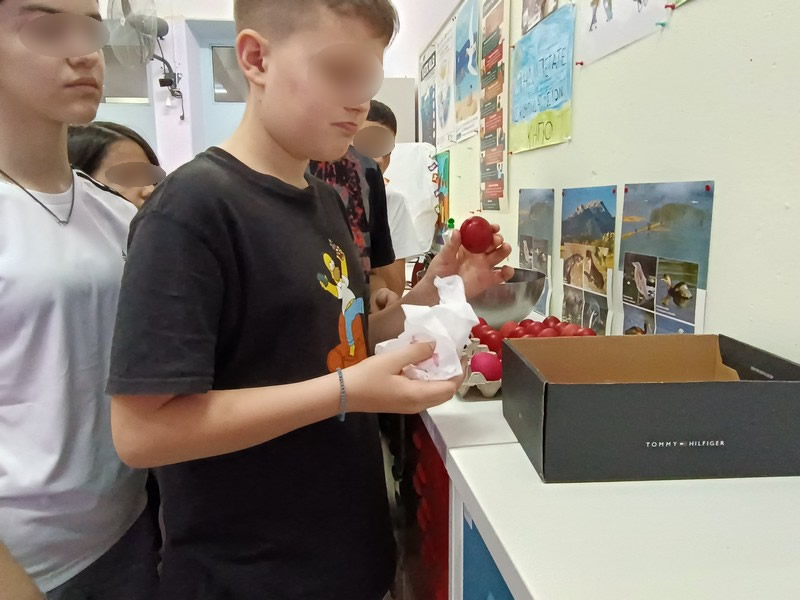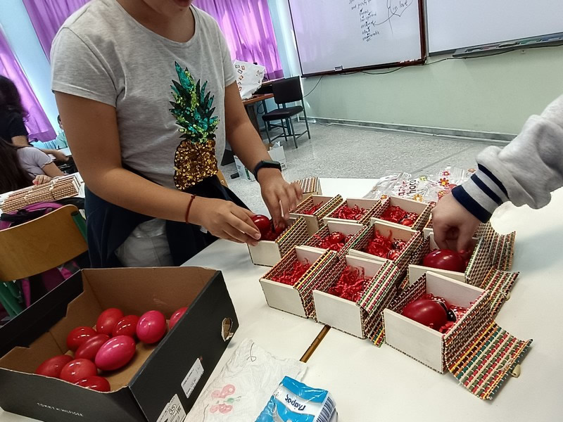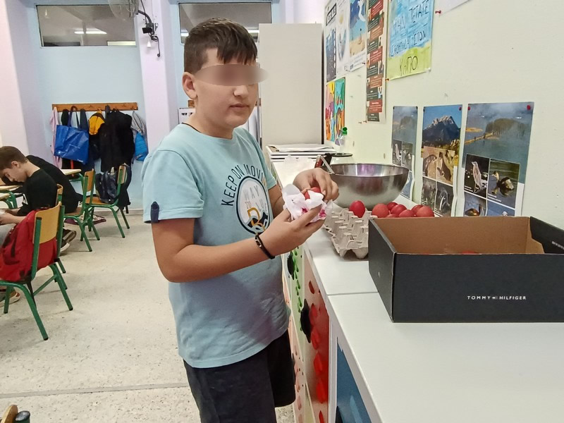 Πριν αποχαιρετιστούμε για τις διακοπές του Πάσχα βάψαμε στην τάξη μας τα παραδοσιακά κόκκινα αυγά. Όχι να το παινευτούμε αλλά η αλήθεια είναι ότι τα αυγά μας βάφτηκαν όμορφα κι ελπίζουμε να είναι γερά και τυχερά στα τσουγκρίσματα της Ανάστασης.