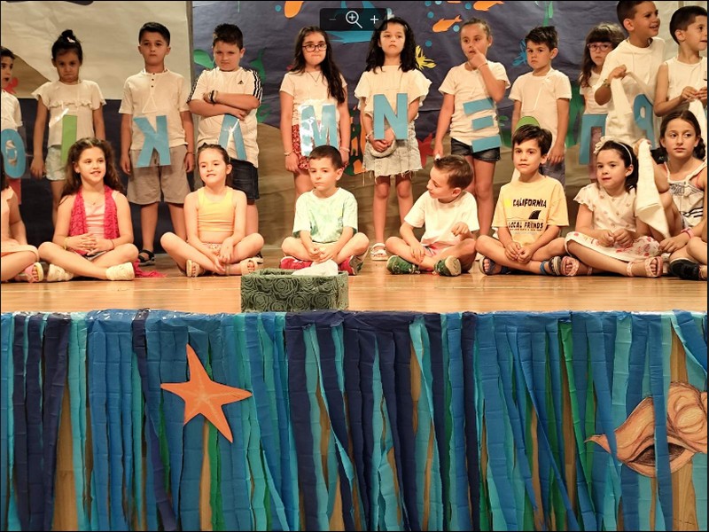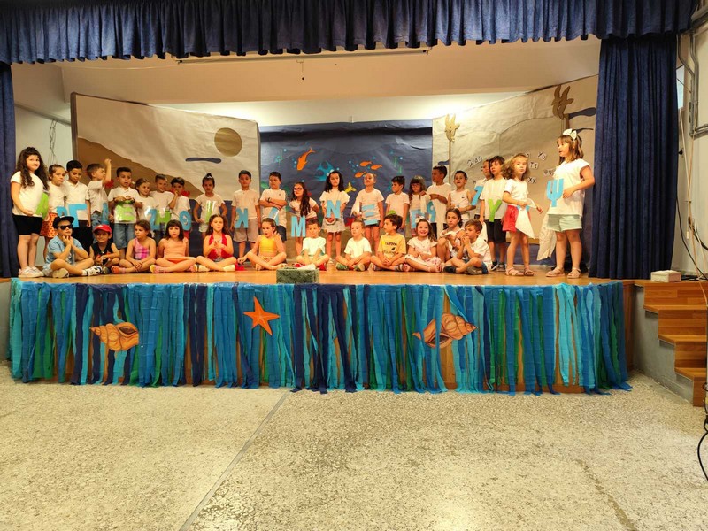 Πραγματοποιήθηκε στις 12 Ιουνίου η καλοκαιρινή γιορτή της Α΄ τάξης. Τα πρωτάκια μας μέσα σ' έναν χρόνο έμαθαν να διαβάζουν και να λογαριάζουν, αλλά συνέχισαν να είναι χαρούμενα και σκανταλιάρικα παιδάκια. Αυτό μας έδειξαν και με τη γιορτή που παρουσίασαν με θέμα "Τα γράμματα το έσκασαν".