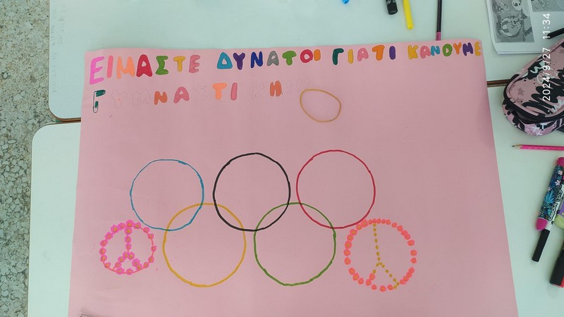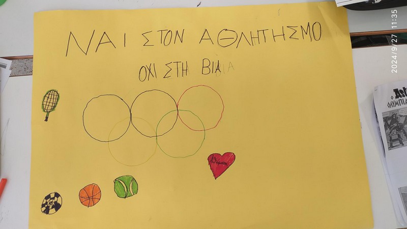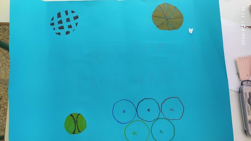 - Οι μαθητές/τριες δημιούργησαν ανά τμήμα θεματική αφίσα ή πανό για την ημέρα του αθλητισμού που εκτέθηκαν σε χώρους του σχολείου.