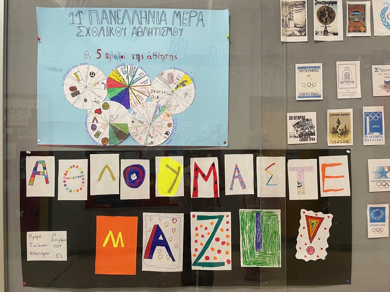 Την Παρασκευή 27 Σεπτεμβρίου 2024 στα πλαίσια του εορτασμού της 11ης Ημέρας Σχολικού Αθλητισμού με την Ευρωπαϊκή Ημέρα Σχολικού Αθλητισμού και με σύνθημα «Αθλούμαστε Μαζί. Δίνουμε ποιότητα στη Ζωή» πραγματοποιήθηκαν στο σχολείο μας αθλητικές δραστηριότητες και εκδηλώσεις. Στόχος ήταν να αναδειχθούν τα οφέλη και η σημασία της φυσικής δραστηριότητας, της σωματικής άσκησης και του αθλητισμού για την υγεία και τη βελτίωση της ποιότητας ζωής. Έτσι, με βασική επιδίωξη τη συμμετοχή ΟΛΩΝ των μαθητών/τριών, ανεξάρτητα από ηλικία ή φυσικές ικανότητες/ δεξιότητες, πραγματοποιήθηκαν οι ακόλουθες δράσεις/ δραστηριότητες.