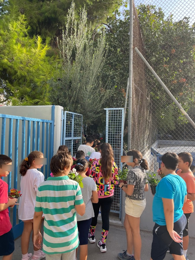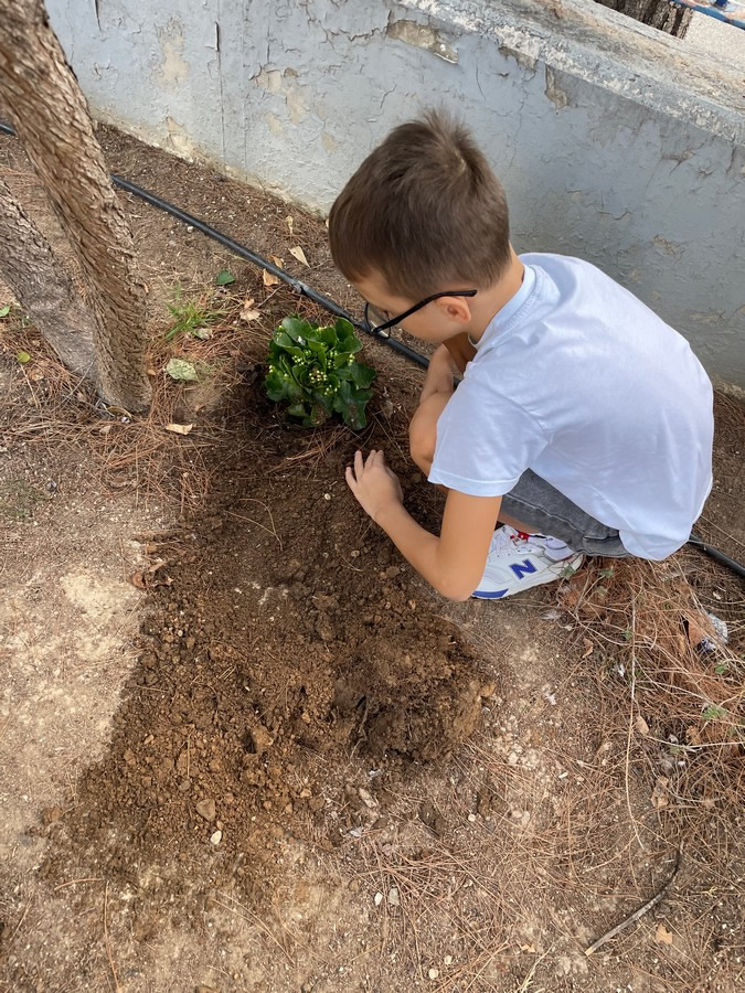 Στη συνέχεια πήγαμε στο σχολείο, όπου συνολικά φυτέψαμε 35 φυτά. Κουραστήκαμε αλλά το αποτέλεσμα μας δικαίωσε. Από εδώ και πέρα θα έχει να φροντίζει κάθε παιδί το φυτό του και θα προσέχει να το διατηρήσει ζωντανό και σε καλή κατάσταση.