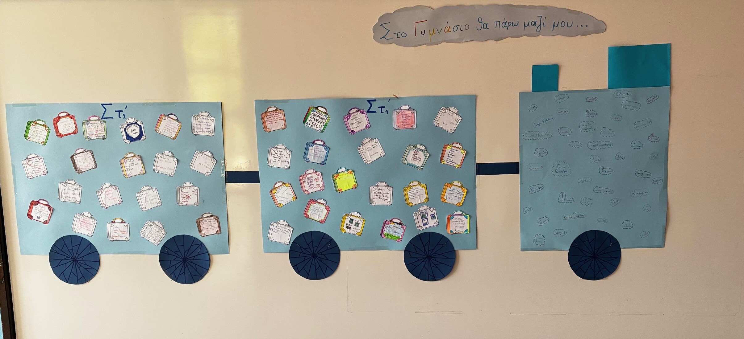 Λίγο πριν από τη λήξη της σχολικής χρονιάς, πραγματοποιήθηκε από τη σχολική ψυχολόγο το πρόγραμμα «Μετάβαση στο Γυμνάσιο» και στα δύο τμήματα της ΣΤ΄ τάξης. Μέσα από συζήτηση και οργανωμένες δραστηριότητες, οι μαθητές και οι μαθήτριες είχαν την ευκαιρία να εκφράσουν τις σκέψεις, τις προσδοκίες και τις ανησυχίες τους για το νέο τους ξεκίνημα — τόσο σε σχέση με την αλλαγή σχολικής βαθμίδας όσο και με τις αλλαγές που φέρνει η είσοδος στην εφηβεία. Στο τέλος, οι μαθητές/μαθήτριες κλήθηκαν να φανταστούν τη μετάβασή τους στο Γυμνάσιο ως ένα ταξίδι με τρένο και ετοίμασαν τη "βαλίτσα" τους με όλα όσα θέλουν να πάρουν μαζί τους ως πολύτιμα εφόδια.