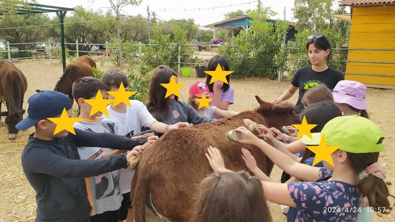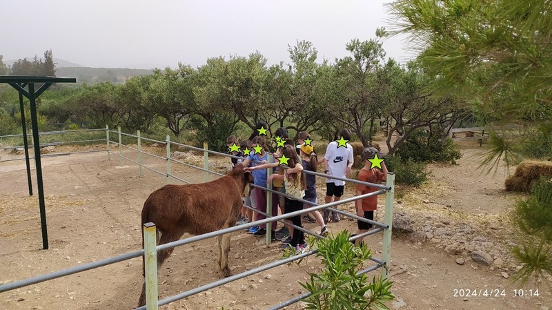 Η Γ΄ τάξη ξεναγήθηκε στο υπέροχο πάρκο της Γαϊδουροχώρας. Εκεί οι μαθητές είχαν την ευκαιρία να έρθουν κοντά σε κουνελάκια, κοτούλες και φυσικά σε δεκάδες γαϊδουράκια. Διδάχτηκαν πολλά από αυτά τα ευγενικά πλασματάκια και έμαθαν πληροφορίες για το δύσκολο παρελθόν τους. Τα περιποιήθηκαν, παίξανε παιχνίδια με τους συντονιστές τους και γέμισαν με όμορφες εικόνες!