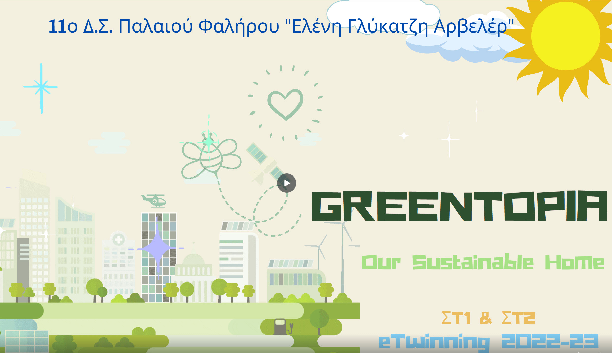 To έργο eTwinning "Greentopia-Our Sustainable Home" που υλοποιήθηκε φέτος από τους μαθητές των ΣΤ1 & ΣΤ2 τμημάτων του σχολείου μας ολοκληρώθηκε. Το πρόγραμμα είχε σκοπό να ευαισθητοποιήσει τους μαθητές μας για τις αλλαγές που υφίστανται στο άμεσο περιβάλλον τους (πόλη/χωριό, σχολείο) και να τους βοηθήσει να κατανοήσουν αυτούς τους χώρους μέσα από την έννοια της βιωσιμότητας. Οι μαθητές μας είχαν μια σειρά από αποστολές: να δημιουργήσουν ερωτηματολόγιο για τις πρακτικές βιωσιμότητας που εφαρμόζονται στο άμεσο περιβάλλον τους (σπίτι,σχολειο, πόλη) να διερευνήσουν πόσο βιώσιμες ήταν οι συνθήκες αλλά και οι συνήθειες των κατοίκων στα περιβάλλοντα που ζουν και να γράψουν άρθρα προτείνοντας λύσεις για τη βελτίωση των συνθηκών και την προστασία του περιβάλλοντος της πόλης, να φτιάξουν και να ανταλλάξουν Χριστουγεννιάτικες κάρτες κατασκευασμένες με τη λογική της βιώσιμης χρήσης, να δημιουργήσουν λογότυπα για το έργο και να ψηφίσουν τα καλύτερα στο σχολείο και το επίσημο λογότυπο του έργου, να ανακαλύψουν το βιώσιμο αλλά και ασφαλές διαδίκτυο, να εκθέσουν το περιβάλλον της πόλης τους στο παρελθόν και το παρόν σε κοινό πίνακα και να εμπνευστούν από τις φωτογραφίες άλλων πόλεων και σχολείων για να δημιουργήσουν μια σειρά από ποιήματα Χαϊκού, να ηχογραφήσουν την απαγγελία τους, να τα μεταφράσουν και να τα εικονογραφίσουν. Τέλος να συναντηθούν διαδικτυακά με τους μαθητές από τα άλλα σχολεία και να αξιολογήσουν το έργο.