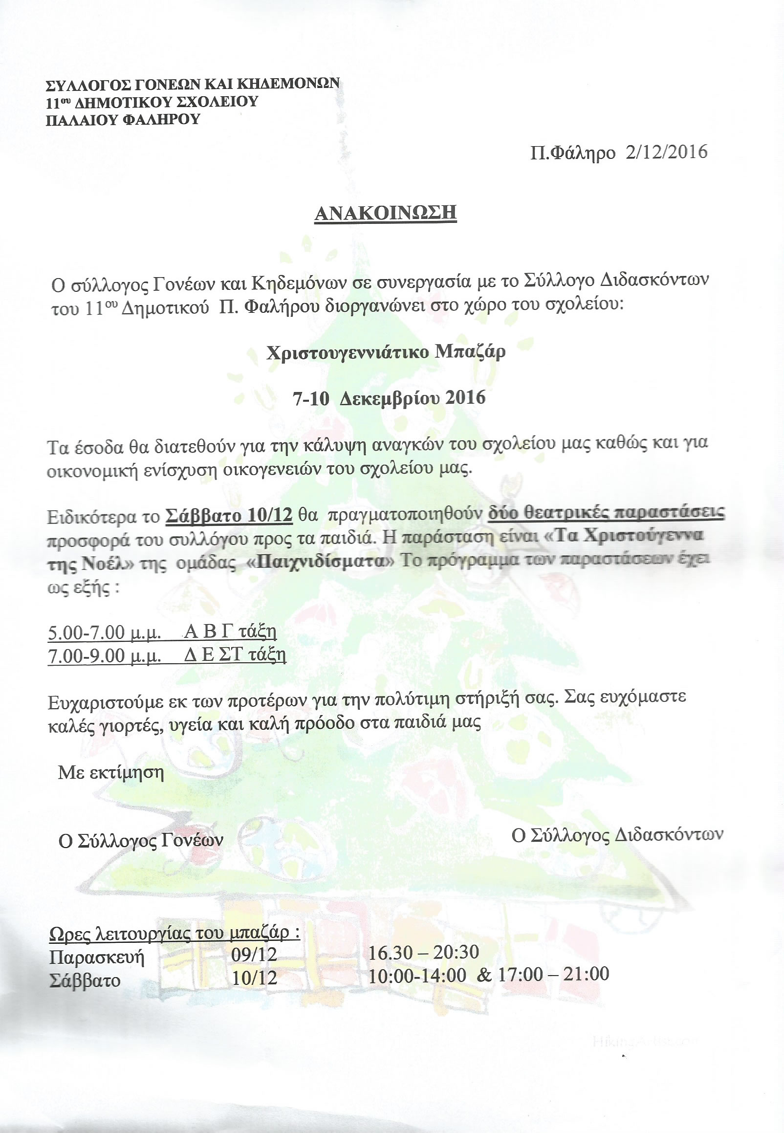 Χριστουγεννιάτικο Bazaar Συλλόγου Γονέων και Κηδεμόνων