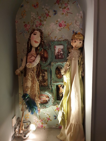 Αφού καθίσαμε αναπαυτικά στα όμορφα τραπέζια και φάγαμε το πρωινό μας, ανεβήκαμε στη συνέχεια κάτι σκάλες και βρεθήκαμε μπροστά σε μια σκηνή με καναπεδάκια. Καθίσαμε αναπαυτικά και σε λίγη ώρα εμφανίστηκαν οι ηθοποιοί. Μας εξήγησαν τι θα δούμε, τι είναι οι κούκλες μάπετ αλλά και τι πρέπει να τηρούμε ως θεατές.