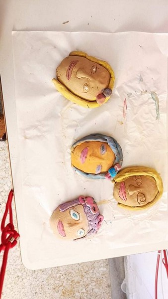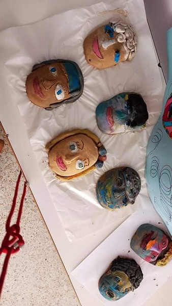 Αφού προσθέσαμε μουστάκια, μαλλιά, φρύδια, κοτσιδάκια κι ό,τι άλλο έβαζε η φαντασία μας, ξεκινήσαμε με πινέλα να τη βάφουμε. Ύστερα τις πήγαμε στην τάξη για να τις αφήσουμε να στεγνώσουν και χτες που τις πήραμε στα χέρια μας ήμασταν όλο χαρά. Τι μπορούμε να κάνουμε με τα χέρια μας όμως …
