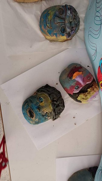 Πριν από κάποιες μέρες επισκέφθηκε το σχολείο μας η κεραμίστρια κα Λάζου και οι συνεργάτες της για να μας δείξουν πώς να δουλεύουμε τον πηλό και πώς μπορούμε με αυτόν να φτιάξουμε μάσκες.