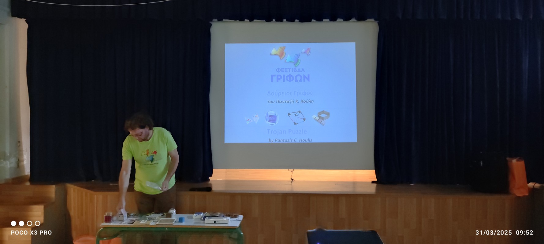 Τη Δευτέρα 31-3-2025 ο κ. Πανταζής Χούλης, από τα πιο γνωστά ονόματα παγκοσμίως στον τομέα της δημιουργίας και λύσης γρίφων επισκέφθηκε το σχολείο μας και οι μαθητές μας είχαν την ευκαιρία να ενημερωθούν για τους γρίφους και να ανακαλύψουν τη λύση των παιχνιδιών γρίφων. Όπως χαρακτηριστικά λέει ο κ. Χούλης «Κάθε γρίφος, κυρίως τα τρισδιάστατα λογικά και εκπαιδευτικά παιχνίδια είναι ένα διαφορετικό άθλημα για το μυαλό..» Ο κ. Χούλης έστρωσε τους γρίφους του πάνω σε τραπέζια και δύο ομάδες μαθητών, (1η ομάδα Γ΄-Δ΄ τάξεις) και (2η ομάδα Ε΄-ΣΤ΄τάξεις), διασκέδασαν λύνοντας γρίφους και επιτραπέζια παιχνίδια διαφορετικής δυσκολίας.